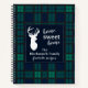 Cute home sweet home Christmas family favourite recipe notebook you can easily customise by clicking the "Personalise" button, Featuring deer silhouette and clan Blackwatch tartan in blue turquoise check.