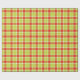 Tartan check style graphic Christmas wrapping gift paper in warm red, lime green and a touch of white.