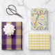 Tartan daisy lemon yellow purple wrapping paper