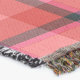 A quality printed throw has its advantages. This is a much finer weave throw than its loopier cousins, and though lighter, it is worth the investment for custom room accessorizing. The back is much prettier than the typical brown, and the fringe on the long sides very vivid, the selvage nicely done. Before photographing, I washed the throw in cold water, delicate, with a thicker woven throw the same size. On tumble dry low, this throw was dry in half the time as the other. This is a very practical quality if you use throws for furniture covers or to wrap up in frequently. The sleekness of the fabric makes it a great layer for accenting or protecting without the feeling of sitting on too much stuff. Perfect for napping or when you feel a light chill coming on. The color printing is beautiful and on this fabric, matched the design and color of my Photoshop image. This is an advantage for blending room fabrics and colors. The fringe on the short sides prints the colors from the design image and therefore varies from the side fringe. I streaked a white fractal line through the plaid pattern to give the illusion of weaving. This printed as crisp as an illusory thread, and put some white in the short side fringe, showing another advantage of print vs loomed- for artistic purposes, line lines, detail, and color integrity can be planned and preserved. My loomed throws have color limitations and more of a needlepoint texture. Print throws reproduce an exact image. The throw felt a little stiff straight out of the package, but this went away in the first delicate wash. Of course I searched the wash water for ink or bleeding and there was none.