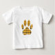 A cute tartan, plaid, dog paw print in orange, black, white, green and red colours.