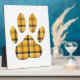 A cute tartan, plaid, dog paw print in orange, black, white, green and red colours.