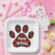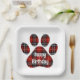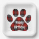 Scottish tartan plaid pawprint with Happy Birthday text on white background.