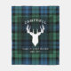 Family Name, location, and year established Buchanan yellow red green plaid with deer head silhouette fleece blanket