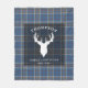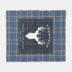 Family Name, location, and year established. Clan Thompson tartan plaid with deer head silhouette Fleece Blanket