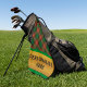 For yourself or anyone you know who loves the game of Golf. Also perfect for Birthdays and Holidays. Tartan plaid background and a gold banner across with the name or personal message of the receiver. Several brands of golf balls to choose from, golf ball markers and matching towel.