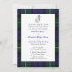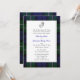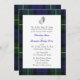 Traditional Scottish tartan plaid wedding invitation, done with the lovely blue and green tartan of the Forbes clan. A white coloured text area, in the middle has a silver tone fern frond at the top. Text is in black and blue and is fully customisable to suit your wedding needs. Personalise text to suit your needs.