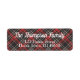 A tartan themed name and return address label with your family name in a script font above your address details.