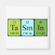 Tasmin spelled out as Ta Sm In (Tantalum Samarium Indium) on a magnet for the scientist in you.