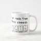 Tasmin spelled out as Ta Sm I N (Tantalum Samarium Iodine Nitrogen) on a mug for the scientist in you.