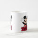 This design features a cheerful and iconic cartoon character giving a playful wink while flashing a peace sign. The bold red "MICKEY MOUSE" text beneath the character adds a fun, energetic touch that stands out beautifully against the black background.