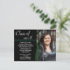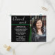 A green and black graduation party announcement with a photo template. A green tassel frames the photo template but background and text colour can be changed. Original vector art by Night Owl's Menagerie, 2015.