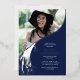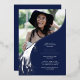 Let's celebrate your grad's big milestone with a modern silver foil graduation party invitation. Each invite features a classic navy blue background, a photo of the grad, a graduation day cap topper tassel with the class year '2025', and a simple text template that’s easy to customise. Let family and friends know how much their presence at the special celebration means to you with these timeless cards that are sure to stand out.