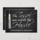 College graduation announcement invitation, with formal traditional classic wording and a fun theme. The tassel was worth the hassle. Fun and witty saying about all the hard work, sweat, determination, sacrifice and dedication that went into becoming a successful educational achiever. Dark black canvas style background with a white and gold tassel and cursive lettering. Personalised keepsake for the graduate. All Designs Copyright © www.CustomInvitesOnline.com