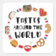 Culinary journey around the globe. From pizza to sushi, this artwork combines iconic dishes from different countries. Perfect for foodies and travel lovers.