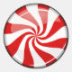 A shiny round peppermint candy treat in the classic red and white style, great for Christmas!