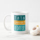 Tata Needs Coffee Mug. This cute coffee mug makes the perfect gift for any father whose children call him Tata instead of Dad. (Tata means father or dad in Czech, Polish, Croatian, & Romanian.) This funny coffee mug says "Tata needs coffee." It has a white background with teal / turquoise / aqua and yellow graphics.
