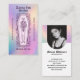 Elevate your tattoo brand with our Gothic Skeleton Tattoo Artist Business Card. This striking design features a vintage sketch-style skeleton holding a delicate bouquet, set against a shimmering iridescent holographic background. Personalize the front with your business name and tagline to leave a lasting impression. On the reverse, display your photo in an elegant arch-shaped frame alongside your contact details. Ideal for tattoo artists, fantasy-inspired studios, and creative professionals, this business card blends dark elegance, mystical charm, and modern flair—making your brand unforgettable.