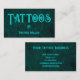 This creative tattoo artist professional business cards template features a teal background and gothic skull head. Cool, unique grunge texture design. Image copyright Marg Seregelyi Photography.