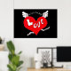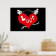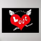 This fun poster has the vintage look of a winged tattoo style heart, on a black background.
