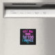 My work uses Velcro spots and laminated paper for the "clean/dirty" sign and has to replace it every few weeks (people resist using it as the Velcro dots peal off). I saw these and instantly purchased them for work AND our home dish drawers.