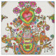 Colourful fabric pattern with Tree of Life on Day of the Dead theme. Funny skulls, fired heart, flowers, Catrina and folk elements.