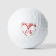 Customize this golf ball with two couple initials. Ideal gift for Valentine's Day for him or her, with a modern tattoo-style red heart design. Choose between an unbranded or branded set of professional balls.