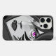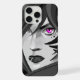 A manga-type portrait of a woman with fuchsia-colored eyes. The look of a warrior to sublimate the hull of your cell phone.