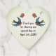 Looking for an edgy yet elegant tattoo wedding party favour tag, then look no further than this super cute heart shaped thank you tag. Old school tattoos with blue birds, roses and a flaming heart on a vintage grungy background with an urban feel. Hand drawn illustration by McBooboo