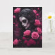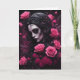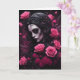 A Goth woman's tattooed face is surrounded by beautiful pink and red roses on this darkly romantic Valentine's Day card.