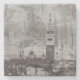 Stone coaster printed with a gritty, grungy painterly design of the Venetian skyline featuring the famous bell tower of St. Mark's Square and the domes of Basilica San Marco. Rough grit and dry brush strokes in distressed tones of taupe and cyan produce a blue-green grey grunge texture. Transparent areas within the design allow your custom background colour to show through. Edit to create weathered Venice, Italy coasters colour-matched to your room. ♡ Idyllfire