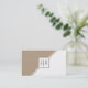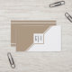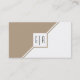 Taupe brown and white monogram modern geometric architect business cards. The front includes two diagonal stripes one taupe and one white that separate the card in two triangles.