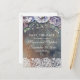 Blue, navy, plum, and maroon flowers rustic vintage lace and wood save the date postcards