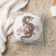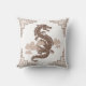 Taupe Brown Chinoiserie Dragon and Clouds Cushion
