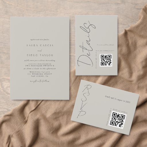 Taupe Grey Modern QR code Wedding Details Enclosure Card