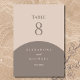 Elevate your reception décor with this elegant, personalised Japandi wedding table number card, where Scandinavian simplicity meets Japanese serenity. This design features a fusion of both styles—clean lines, organic shapes, and soft earth tones in warm taupe hues. The minimalist layout is enhanced with stylish typography and a delicate script font, creating a balanced and refined look. Perfect for couples seeking a modern yet timeless aesthetic, this table number card adds a peaceful, understated elegance to your wedding tablescape.