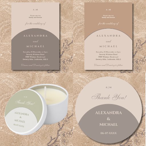 Embrace understated elegance with this personalised Japandi wedding invitation, where Scandinavian simplicity meets Japanese serenity. This design features a fusion of both styles, highlighting earth tones and organic shapes in soft light and dark taupe. The couple's monogram is beautifully showcased, complemented by stylish typography and a graceful script font. Elegant and minimalist, this invitation sets the tone for a refined and tranquil celebration.