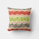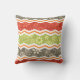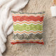 Taupe, Red, Green, and Orange Paisley Chevron Cushion