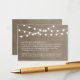 Chic modern summer wedding information insert card design with simple elegant glowing string lights hanging across the top and a classy mix of modern and calligraphy script fonts on a printed faux watercolor texture background. A simple and stylish preppy design, perfect for summer! Click the CUSTOMIZE IT button to customise fonts, move text around and create your own unique one-of-a-kind invitation design.