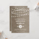 Chic modern summer wedding invitation design with simple elegant glowing string lights hanging across the top and a classy mix of modern and calligraphy script fonts on a printed faux watercolor texture background. A simple and stylish preppy design, perfect for summer! Click the CUSTOMIZE IT button to customise fonts, move text around and create your own unique one-of-a-kind invitation design.