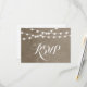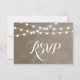 Chic modern summer wedding RSVP reply card design with simple elegant glowing string lights hanging across the top and a classy mix of modern and calligraphy script fonts on a printed faux watercolor texture background. A simple and stylish preppy design, perfect for summer! Click the CUSTOMIZE IT button to customise fonts, move text around and create your own unique one-of-a-kind invitation design.