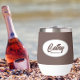 Gift your wedding bridesmaid with this trendy and personalised, stainless steel wine tumbler with her name in stylised script inside a white, oval design. Background colour and script is a taupe colour. Perfect for a bachelorette party as well! Personalise your wine tumbler by editing and replacing bridesmaid name with desired name. Available in many, popular bridesmaid wedding colour schemes.
