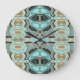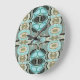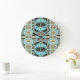 Taupe Teal Aqua Turquoise Hip Bohemian Bali Art Large Clock