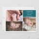 Taupe Teal Baby Photo Collage Announcement Card