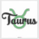 Astrology Sign Taurus with black font and green symbol to represent Taurus element of Earth. Astrology signs depict the star's alignment at every person's birth and influence personality and the world around us. Astrology Signs with black or white font and green, red, blue, or yellow symbol to represent the elements of Earth (green), Fire (red), Water (blue), Air (yellow). Astrology signs depict the star's alignment at every person's birth and influence personality and the world around us.
