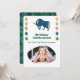 This “Photo Edition” Taurus invitation features a hand-painted impressionist bull with shimmering gold glitter accents on a clean white background. Your child’s photo is beautifully showcased in a unique organic frame, surrounded by festive balloon pillars.