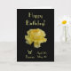 A photo of a beautiful yellow rose on black background. " Happy Birthday"; Symbol of Taurus birth sign and horoscope dates- April 20-May 20. Message inside: "Wishing you a beautiful Day!" Personalise your message! Phootgraphy by Maria Santos- Lusinhas do Sul