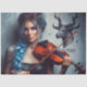 The beautiful Musician with vibrant blue hair Zodiac Taurus plays her violin before the symbol of the bull in astrology. This is perfect for crafts like decoupage!
