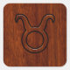 Taurus Zodiac Sign on Mahogany Style Square Sticker