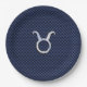Taurus Zodiac Sign on Navy Blue Carbon Fibre Style Paper Plate